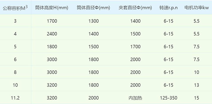 攪拌目前多采用錨式攪拌器,轉速6-15轉/分,攪拌的按裝目前采用下軸安裝,可縮短軸長度,便于安裝維修。 真空濃縮結晶鍋主要技術參數(shù)表(供參考)