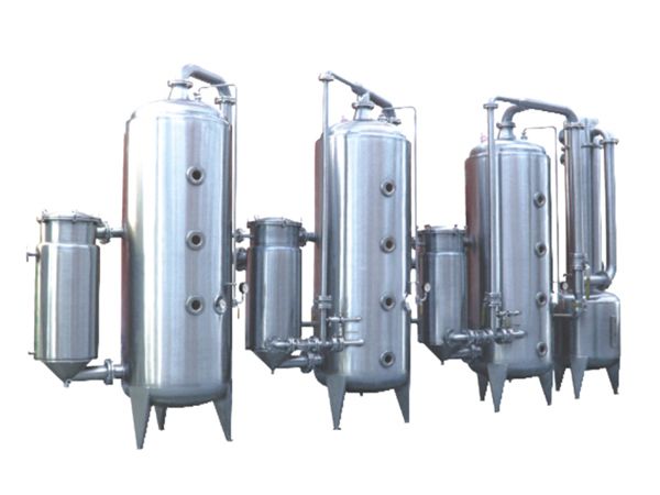 【W(wǎng)Z 111 500-5000系列三效節(jié)能外循換環(huán)真空濃縮器(能回收酒精)】 本濃縮器適用于中藥、西藥、葡萄糖、淀粉、味精、乳品、化工等溶液的濃縮,尤其適用于熱敏物料的低溫真空濃縮。用戶可根據(jù)實際情況,來選用技術(shù)參術(shù)中系列濃縮器。 1.本濃縮器采用外加熱式自然循環(huán)式與負(fù)壓蒸發(fā)方式,具有蒸發(fā)速度快,濃縮比重大,可達(dá)1.2-1.3; 2.本濃縮器采用三效同時蒸發(fā),二次蒸汽得到反復(fù)作用,既節(jié)省了鍋爐的投資,又節(jié)約能源消耗,耗能與單效濃縮器相比降低70%,不到一年用戶可從節(jié)約能費中收回本濃縮器的全部投資。 3.多功能操作特點:⑴可以回收酒精濃度80%左右。⑵一效、二效、三效可以反復(fù)并鍋收膏。⑶可以間歇連續(xù)進料。